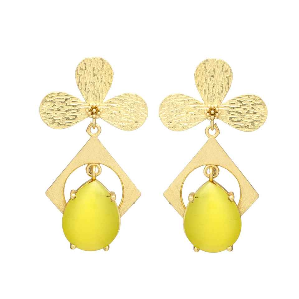 ต่างหูสตั๊ดรูปใบไม้ชุบทองพลอยคาลซิโดนีสีเหลืองมาใหม่
