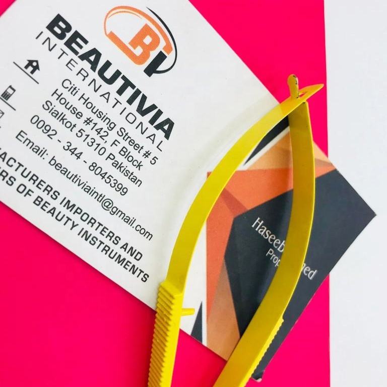 อุปกรณ์ต่อขนตาสแตนเลสสตีลคมสำหรับต่อขนตาแบบตรงกรรไกรสปริงขนาดเล็กสีเหลืองแบบทำด้วยมืออย่างยั่งยืน