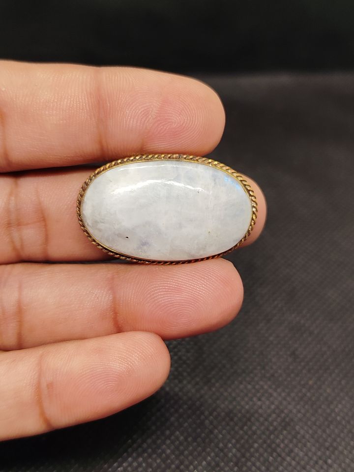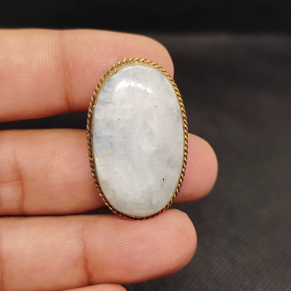 จี้สร้อยคอแฟชั่นงานแต่งงานสำหรับผู้หญิง รูปทรงวงรีแบบคาโบชองลายร่องประดับมูนสโตนสีทองแดง ชุบทองแดงโบราณ รุ่นใหม่ล่าสุด