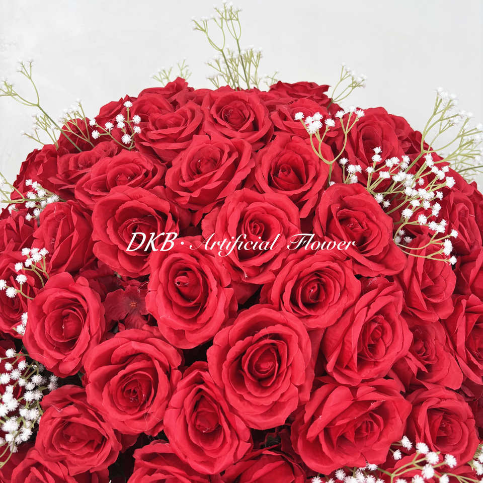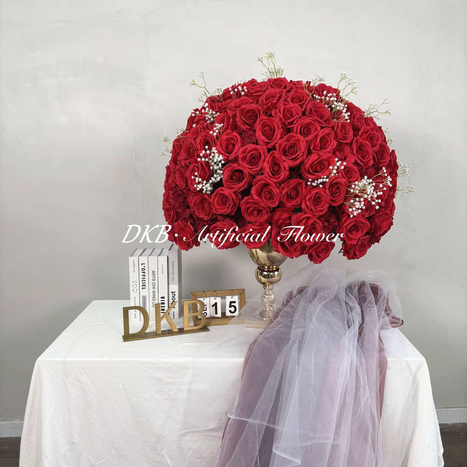 โต๊ะมาใหม่ลูกบอลดอกไม้สีแดงน้ำตาลแดงประดิษฐ์ทำจากผ้าไหมสีแดงลูกบอลดอกไม้ดอกกุหลาบ