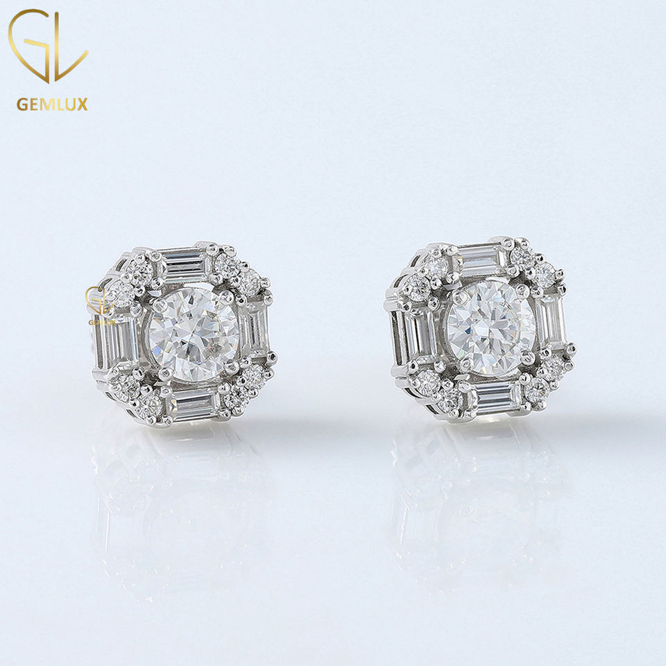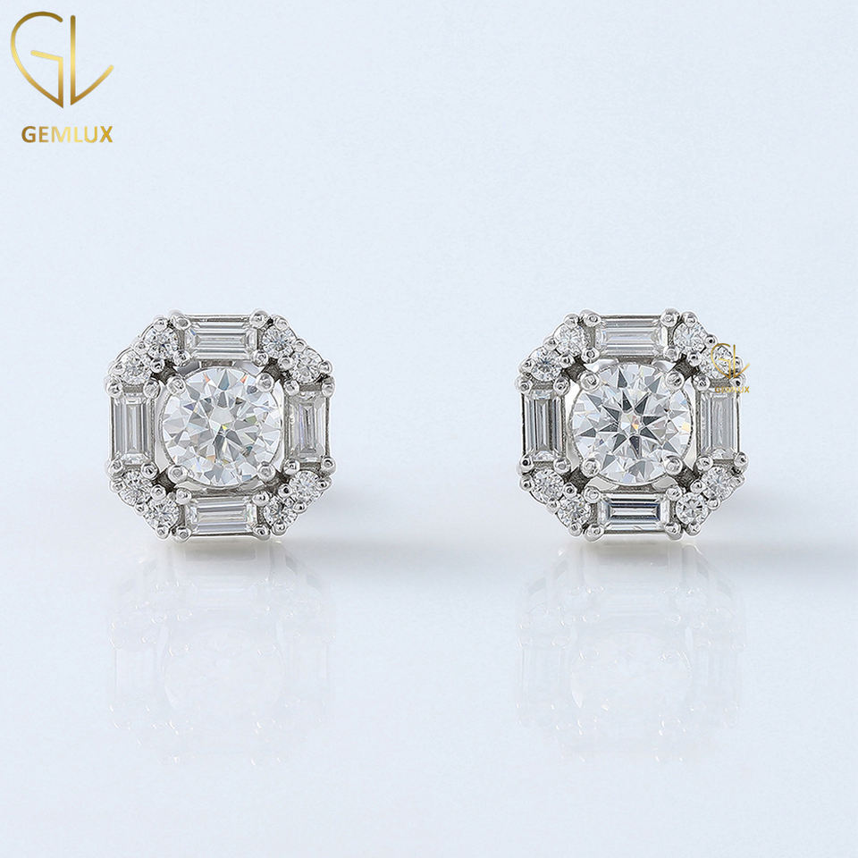 สินค้าใหม่ 1CT ต่างหูเพชร Moissanite ทรงกลม, ต่างหูสตั๊ด Moissanite, ต่างหูสตั๊ด Unisex ที่ผ่านการรับรอง GRA