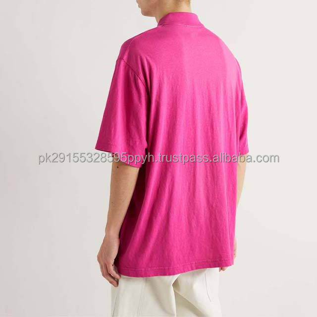 เสื้อโปโลผ้าคอตตอนสำหรับผู้ชายสีชมพูไซส์พิเศษดีไซน์โลโก้แบรนด์ตามสั่งมาใหม่2025 OEM