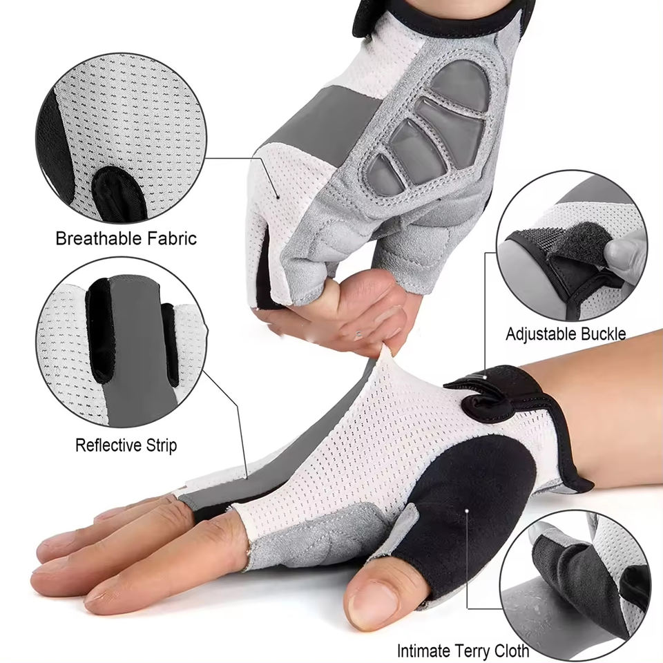 คุณสมบัติ:ไม่ลื่น, สายรัดข้อมือปรับได้, Hand Grips, ระบายอากาศ, Half Finger/Fingerless