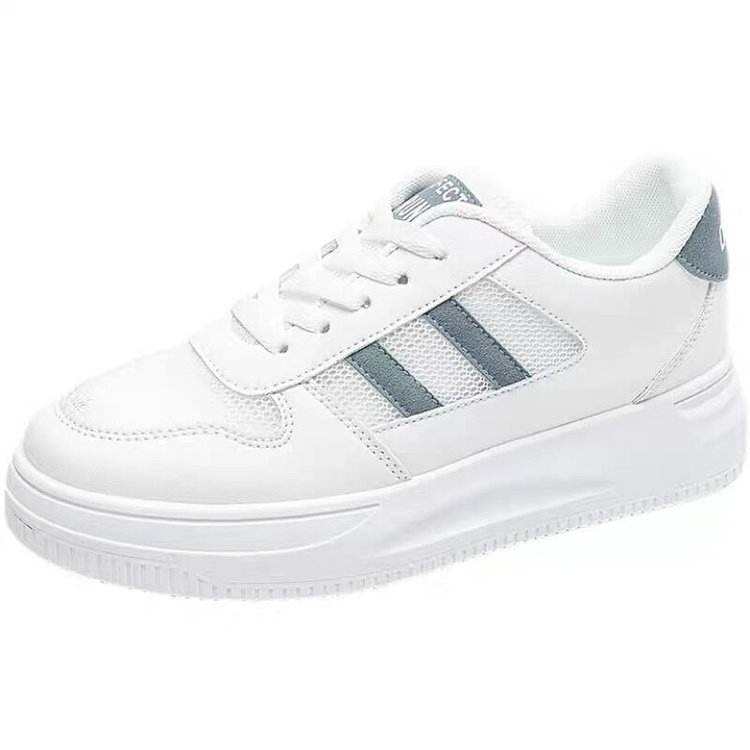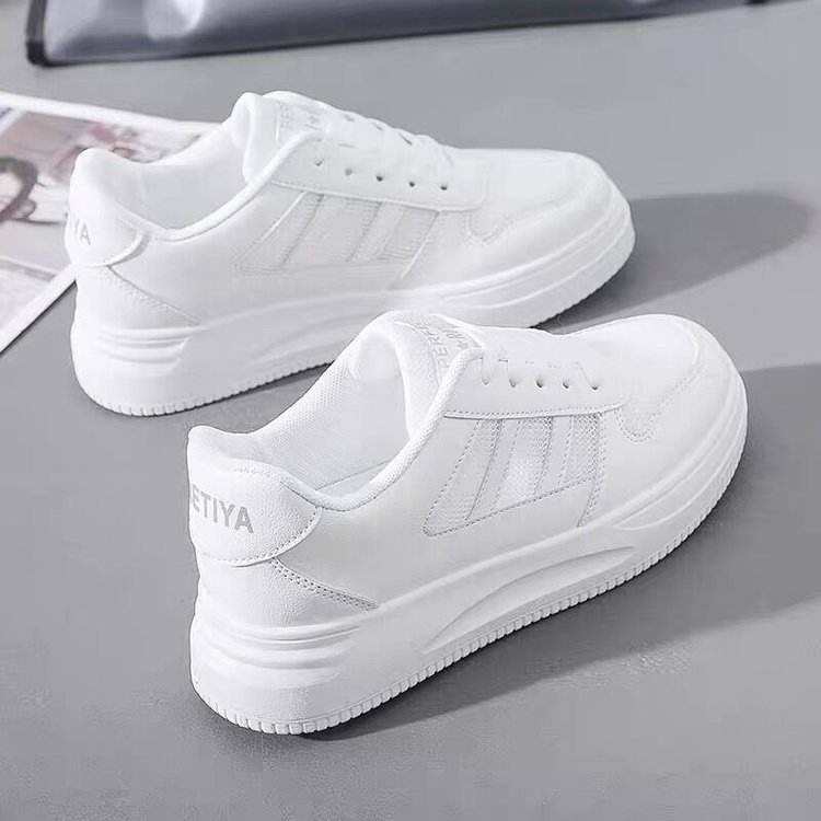 รองเท้ากีฬาลำลองของผู้หญิงพื้นรองเท้าสีขาวสำหรับนักเรียนรองเท้าสีขาวด้านบนทำจากผ้าใบ