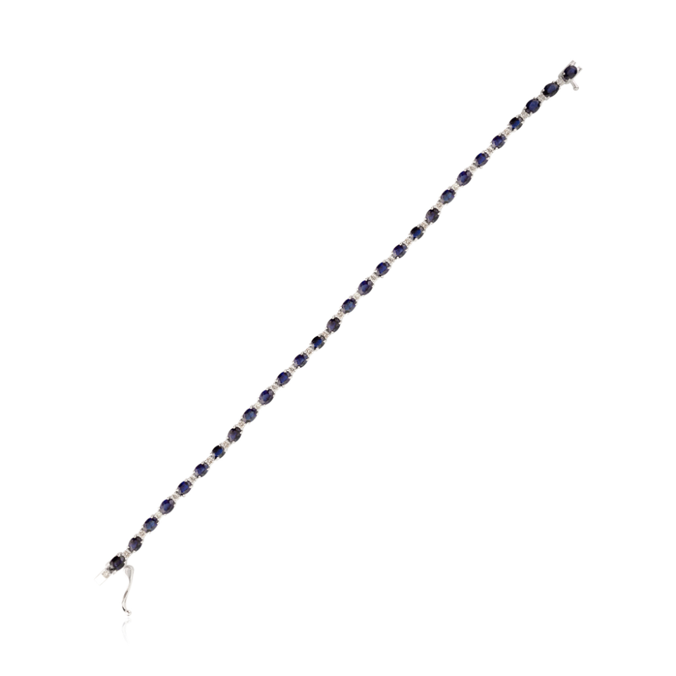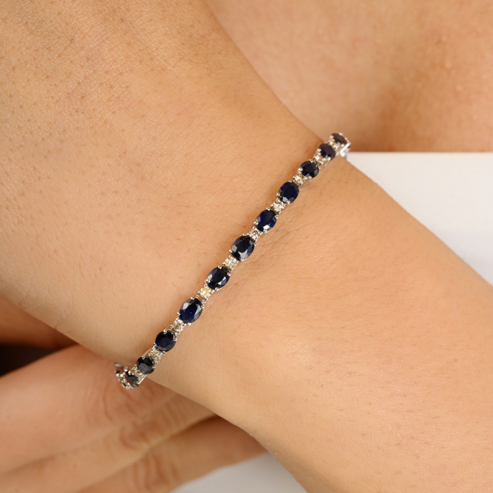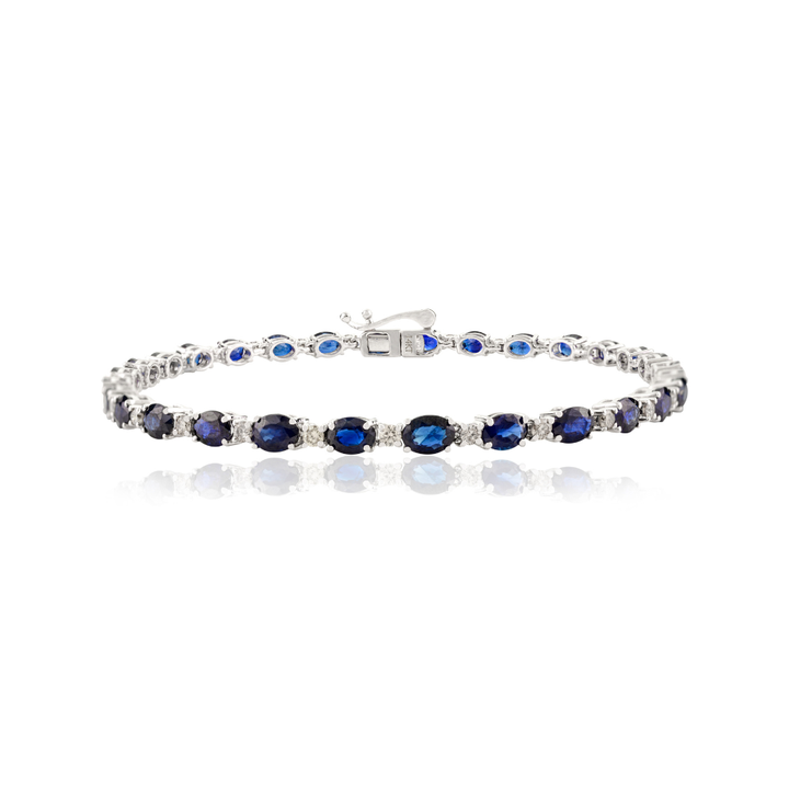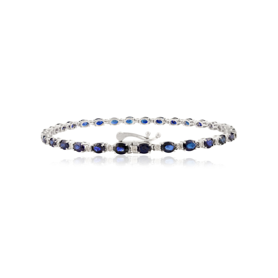 คอลเลกชันสินค้าใหม่สร้อยข้อมือเทนนิสแบบวางซ้อนกันได้ทั้งชายและหญิงกำไลข้อมือสีฟ้าไพลินและเพชรที่เป็นของขวัญครบรอบปีที่ K14แท้