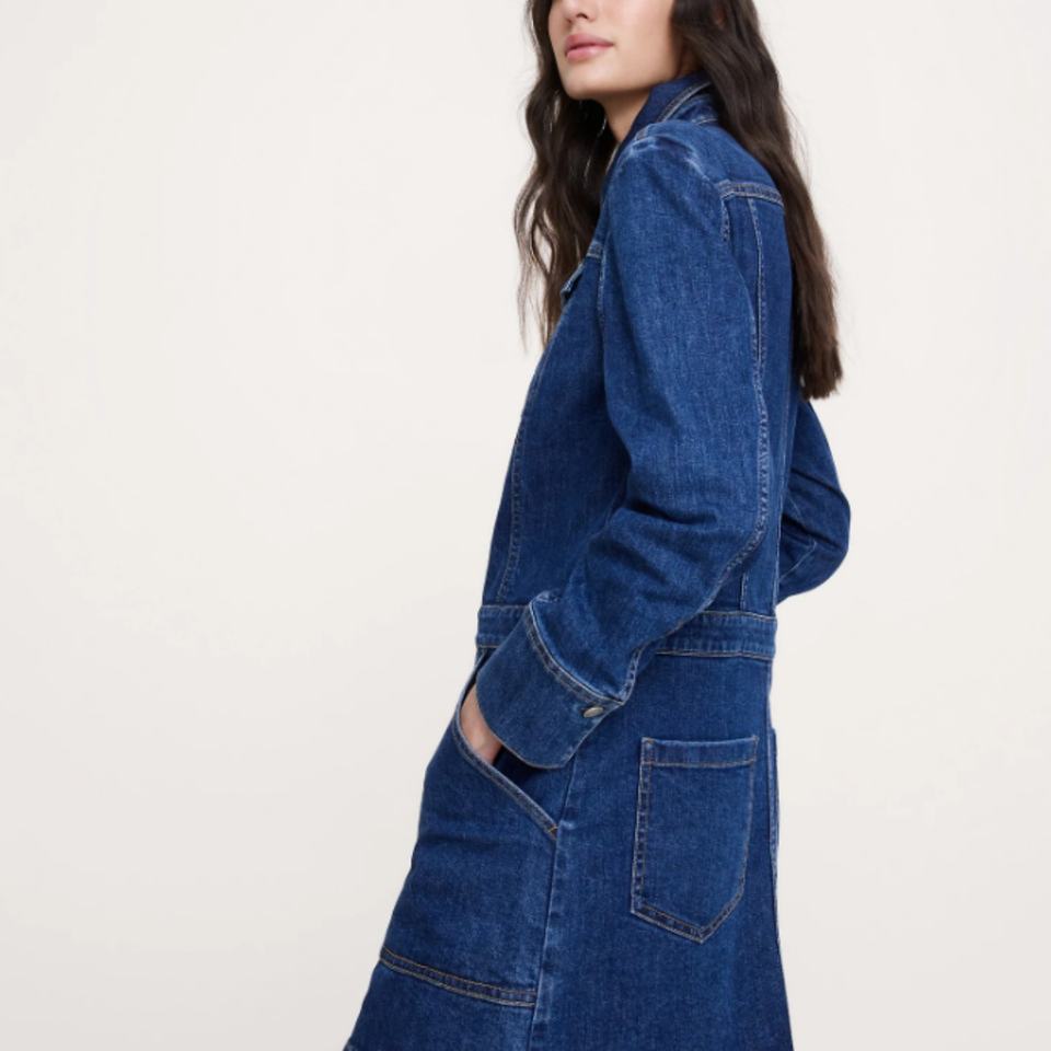 เดรสยีนส์ผู้หญิงแบบใหม่สไตล์เรโทร มินิเดรสยีนส์ทรงตรงแบบลำลอง ล้างสีแบบแอซิดวอช