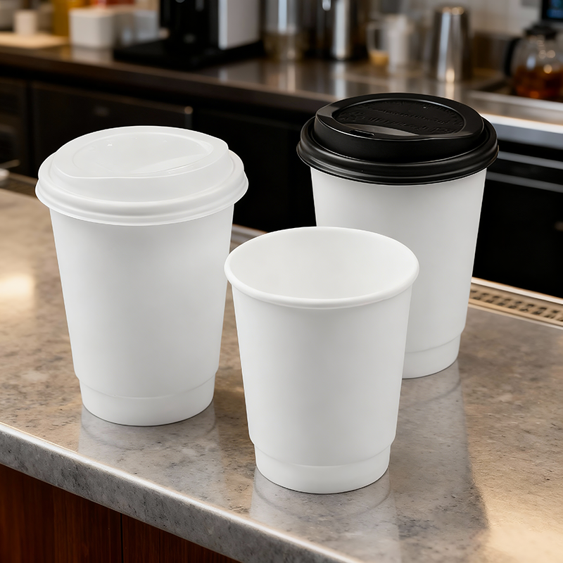 แก้วกระดาษคราฟท์สีขาวแบบใช้แล้วทิ้ง รีไซเคิลได้ ผนังสองชั้น ผลิตตามสั่ง สำหรับกาแฟ ชา น้ำผลไม้ นม รุ่นใหม่