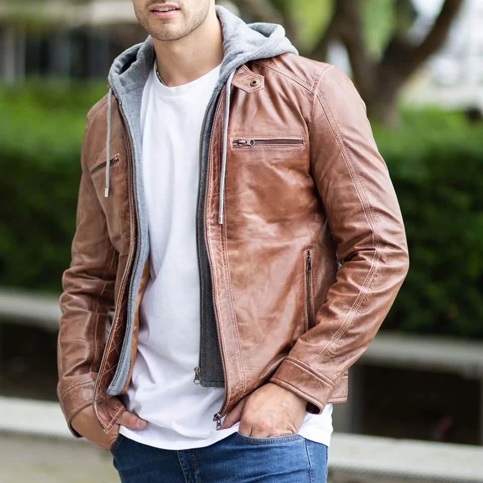 แจ็คเก็ตหนังแท้สไตล์วินเทจสำหรับผู้ชาย คอตั้ง หนังแกะสีน้ำตาล รับทำโลโก้ตามสั่ง สินค้ามาใหม่ คุณภาพสูง สำหรับฤดูหนาว