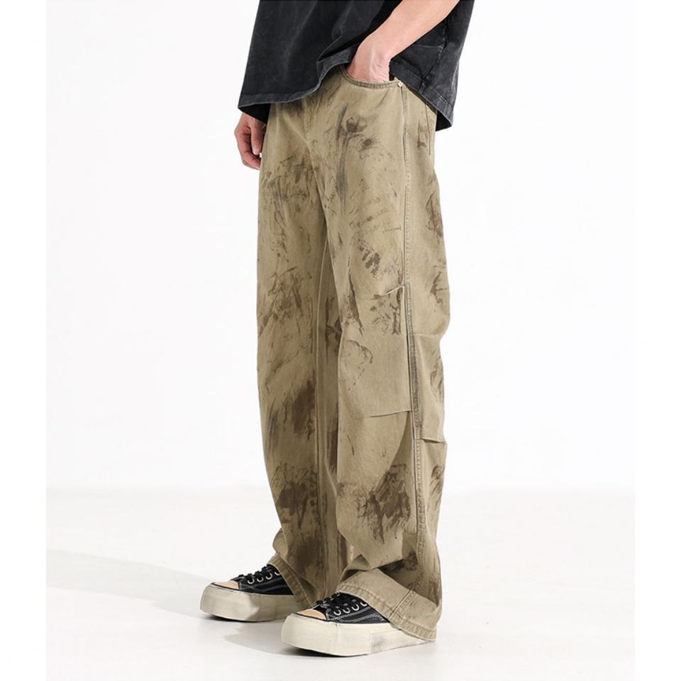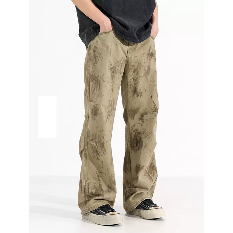 กางเกงคาร์โก้พิมพ์ลายทรงตรงสไตล์สตรีทแวร์แบบใหม่สำหรับผู้ชาย กางเกงพาราชูท กางเกงขายาวผู้ชาย