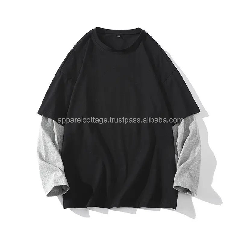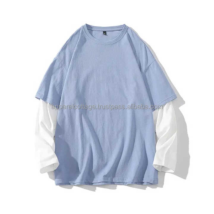 New Arrivals Double Contrast Sleeves 100%cotton 250gsm Wholesale Oversized Printed Drop Shoulder Men's T-shirts Tees t Shirts