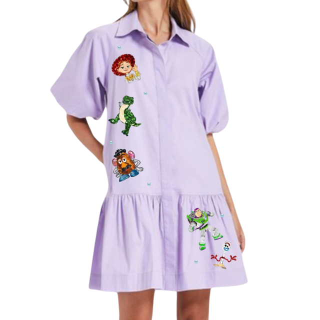 เดรสผ้าฝ้ายแขนพองลาเวนเดอร์สำหรับผู้หญิงใส่สบายมาใหม่