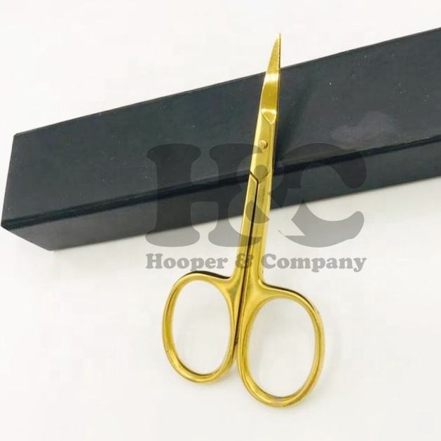 กรรไกรตัดเล็บสแตนเลสสีทองขนมิงค์ปลายแหลมพร้อมโลโก้อุปกรณ์ความงามอย่างยั่งยืนมาใหม่