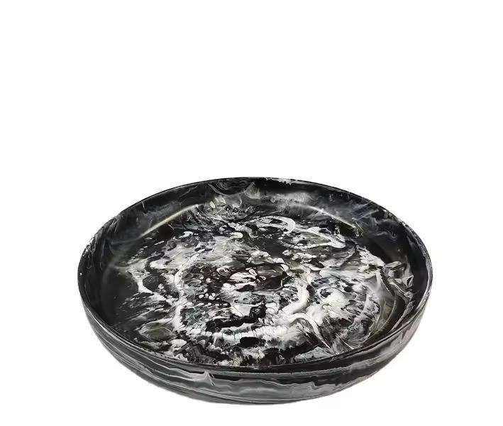 จานสลัดเรซิ่นทำมือลายวนสีฟ้าแบบมีเท็กซ์เจอร์ ของตกแต่งบ้าน ใช้ในบ้าน โรงแรม ร้านอาหาร และบาร์