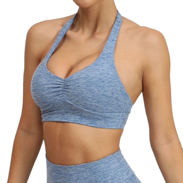 สปอร์ตบราคุณภาพสูงแบบใหม่ ไซส์ใหญ่พิเศษ ไร้สายด้านหลัง พร้อมโลโก้สั่งทำด้านหน้า สำหรับผู้หญิง ออกกำลังกายโยคะ แบบผูกคอ