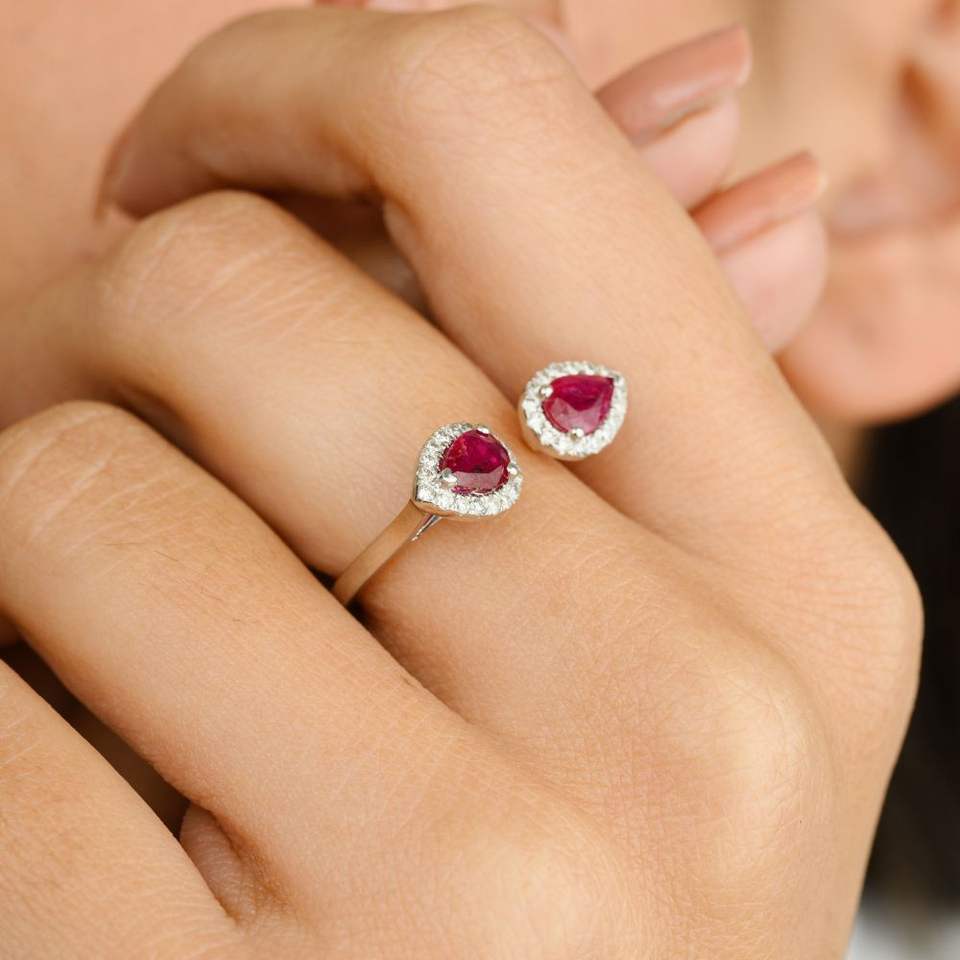 คอลเลกชันล่าสุด18K แหวนหมั้นทองคำขาวทับทิมธรรมชาติคุณภาพสูงปรับได้สำหรับงานแต่งงาน