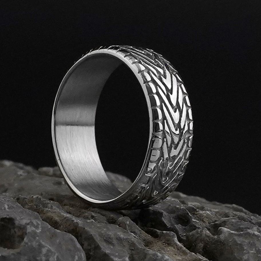 แหวนสแตนเลสสตีลผู้ชายแบบใหม่ล่าสุด ดีไซน์เรขาคณิต วัสดุหลักทำจากไทเทเนียม สไตล์วินเทจ เหมาะสำหรับเป็นแหวนหมั้น