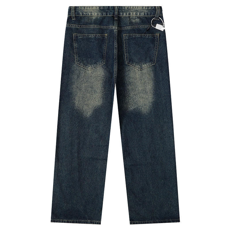 กางเกงยีนส์เดนิมทรงตรงสไตล์วินเทจสำหรับผู้ชายรุ่นใหม่ ทรงเข้ารูป เอวกลาง ระบายอากาศได้ดี ตกแต่งด้วยผ้าปะติด คุณภาพสูง