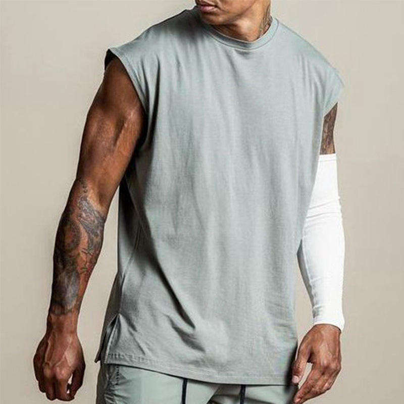 เสื้อกล้ามออกกำลังกายผู้ชายแบบใหม่ ผ้าฝ้าย แขนกุด เหมาะสำหรับเล่นบาสเก็ตบอล วิ่ง ฝึกซ้อม ฟิตเนส เสื้อกีฬา