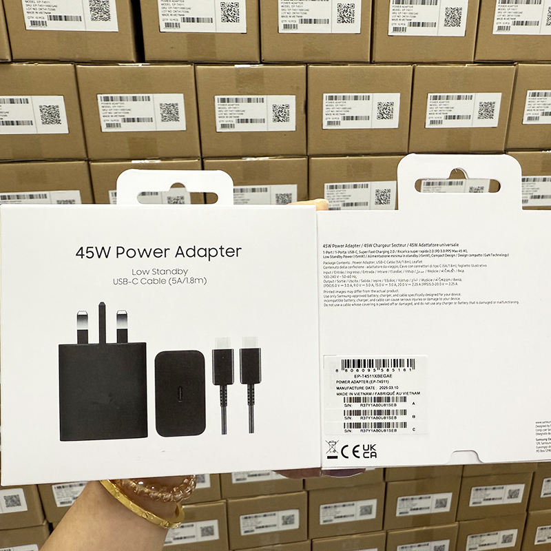 อะแดปเตอร์ชาร์จโทรศัพท์มือถือรุ่นใหม่ หัวปลั๊ก EU US UK ช่องเสียบ USB Type C สำหรับ Samsung รองรับการชาร์จเร็ว 45W สำหรับ Samsung S22 S23 Note10 Note20
