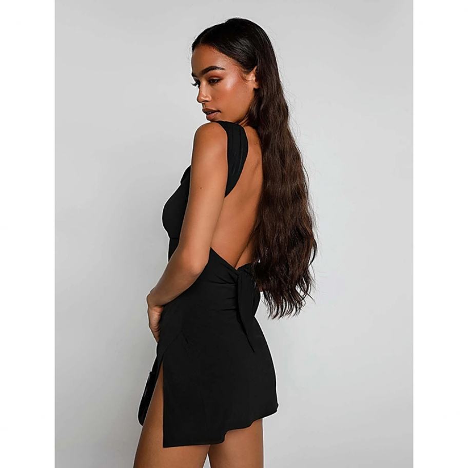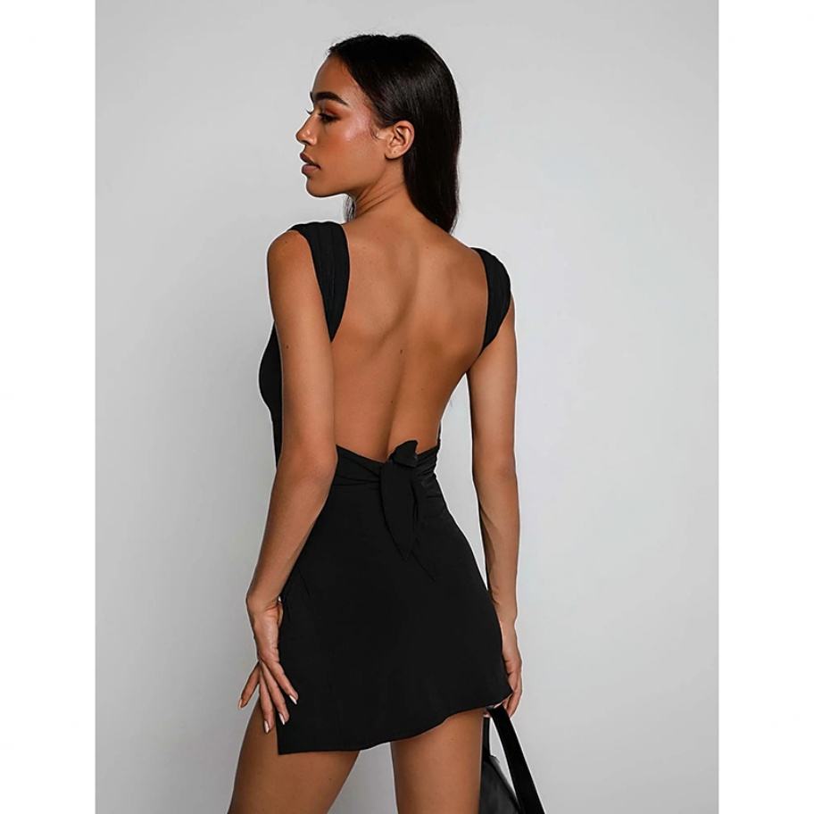 เดรสสั้นแบบใหม่ล่าสุด ดีไซน์เปิดไหล่ สายเดี่ยว คอวี เซ็กซี่ สีสันทันสมัย ผ้าซาติน ช่วงอกแบบพันรอบตัว สไตล์ลำลอง