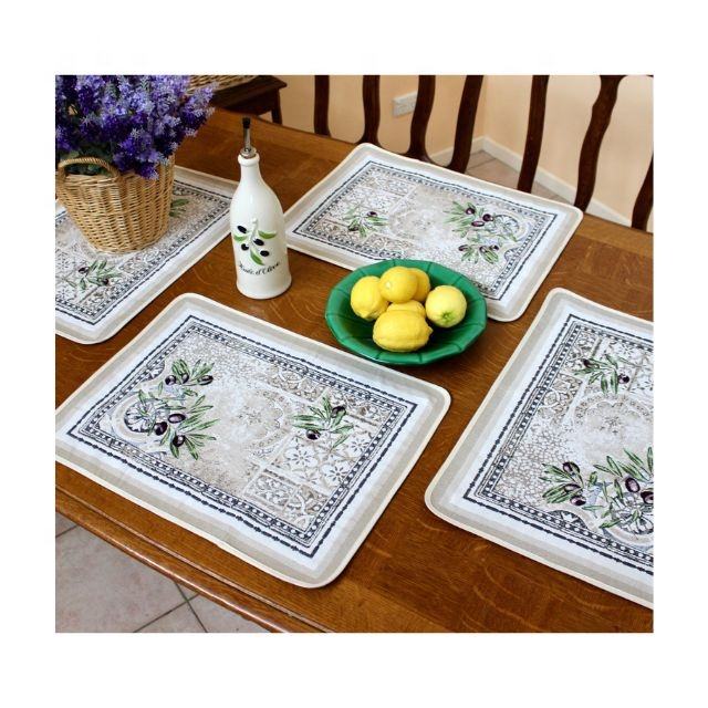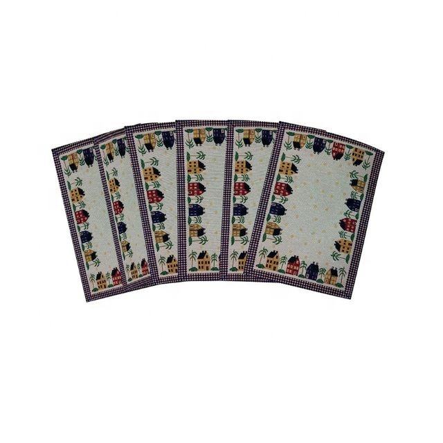 เสื่อรองจานทรงสี่เหลี่ยมทนความร้อน4ใบขนาด45x30ซม. ปักลายดอกไม้ผ้าฝ้าย100% ทอน่ารักกันน้ำ