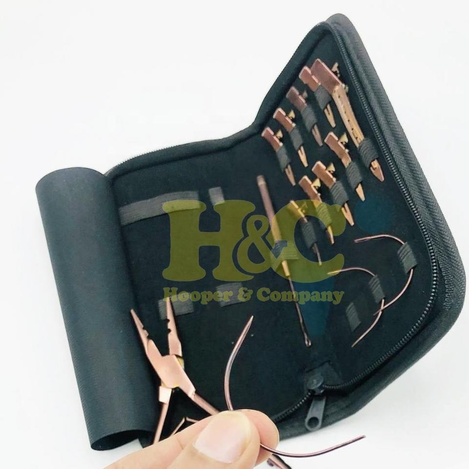 ชุดอุปกรณ์ต่อผมสแตนเลสสตีลสีตามสั่งสำหรับมืออาชีพ พร้อมกระเป๋า คลิปหนีบ และเข็มรูปตัว C สำหรับใช้ในเชิงพาณิชย์