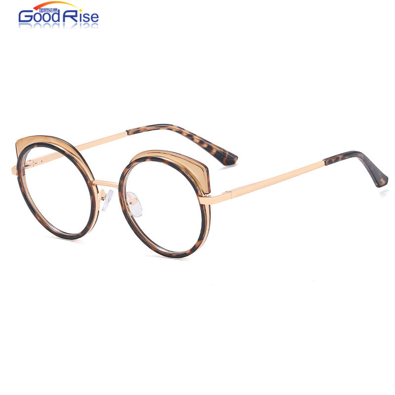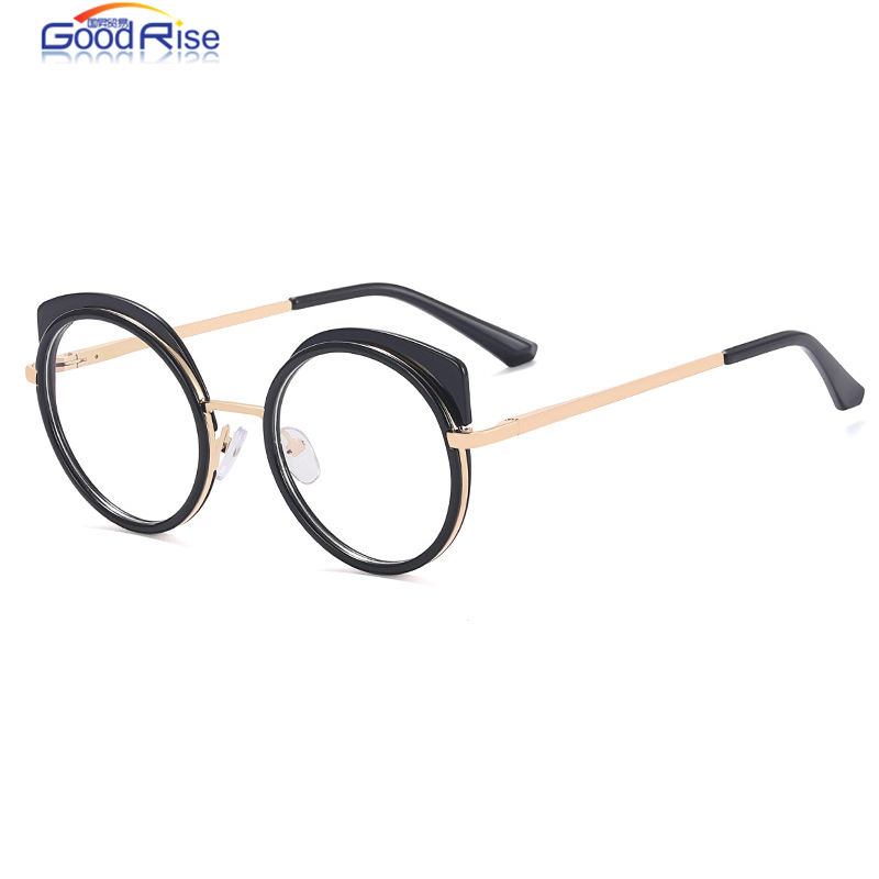 แว่นสายตาย้อนยุคกรอบกลมมาใหม่แว่นตาโลหะตาแมวป้องกันแสงสีฟ้า