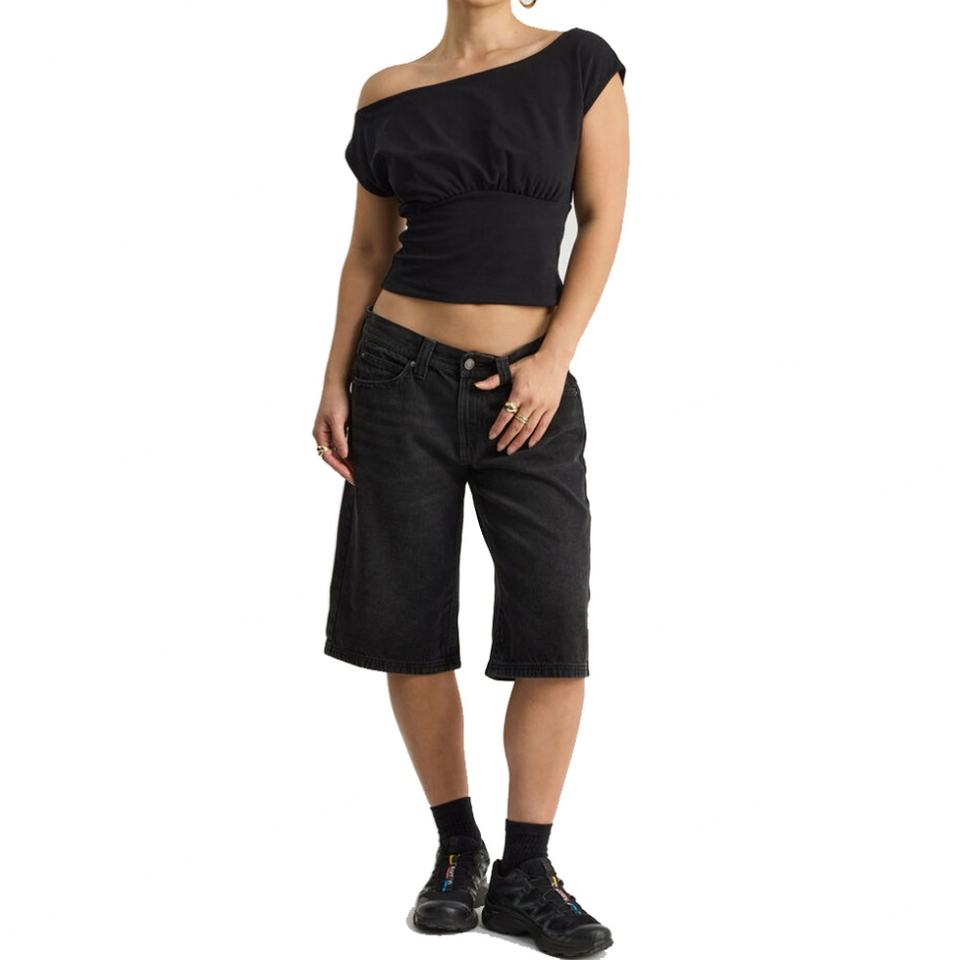 เสื้อผู้หญิงสีพื้นแบบใหม่ ทรงเปิดไหล่ แขนทรงปีกค้างคาว สองชั้น รับสกรีนโลโก้ ทรงเข้ารูป เสื้อผู้หญิงสำหรับฤดูร้อน