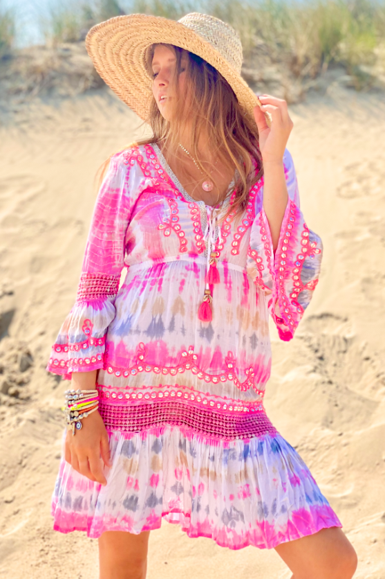 ชุดเดรสสั้นปักลายกระจกมีระบายสำหรับผู้หญิงสินค้าใหม่สำหรับใส่ในรีสอร์ทฤดูร้อน