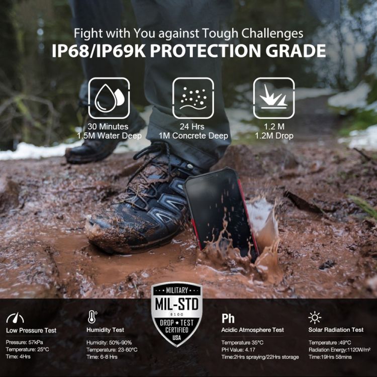 กันน้ำ IP68: รับประกันว่าโทรศัพท์จะทำงานได้ในสภาพแวดล้อมที่โหดหินต่างๆ รวมถึงใต้น้ำและสภาพที่มีฝุ่น