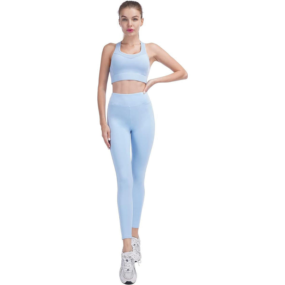 ชุดกีฬา2ชิ้นของผู้หญิงบราโยคะและกางเกงออกกำลังกายให้ผลกระทบสูงแห้งเร็ว
