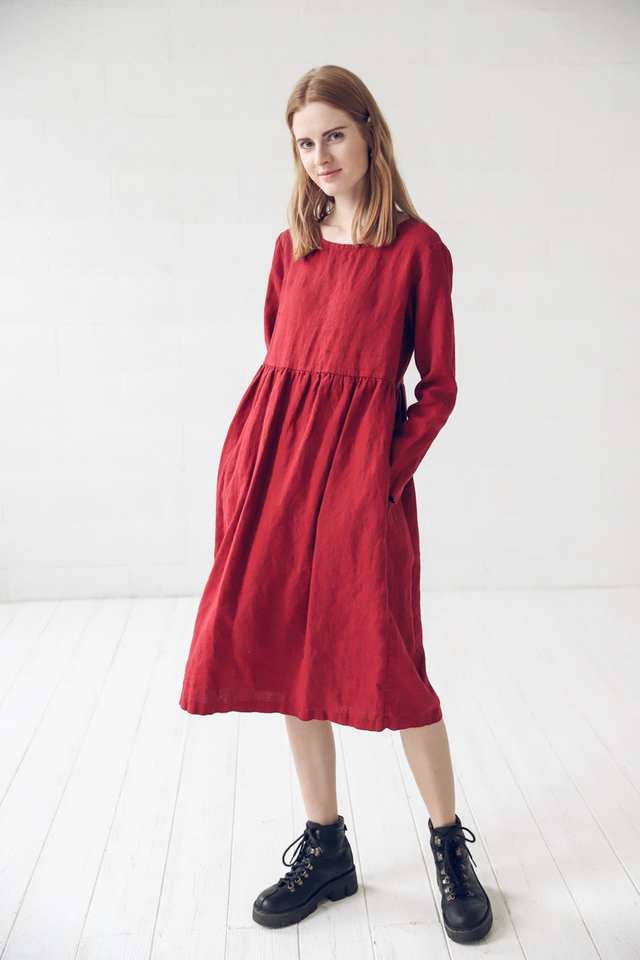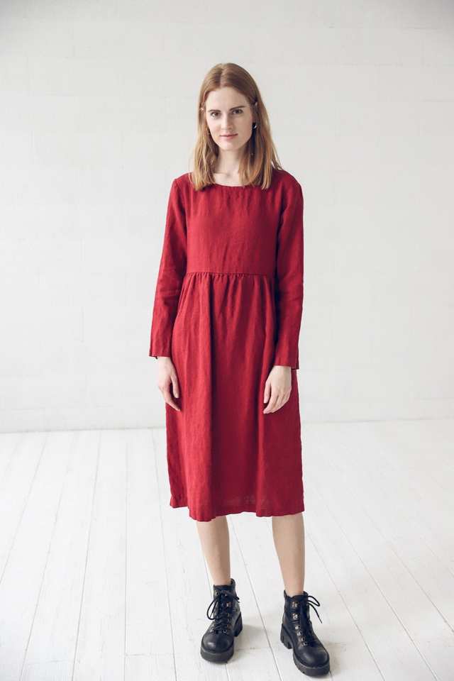 ชุดเดรสแม็กซี่ผ้าลินินสไตล์วินเทจของผู้หญิงชุดเดรสทรงหลวมแขนยาวผ้าลินินนุ่มซักตามธรรมชาติเหมาะเป็นของขวัญ