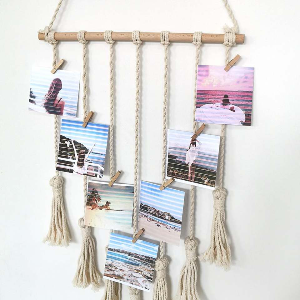 มาใหม่โบโฮสำหรับตกแต่งที่ยึดภาพพรมแขวนผนัง macrame มีคลิป25ชิ้น