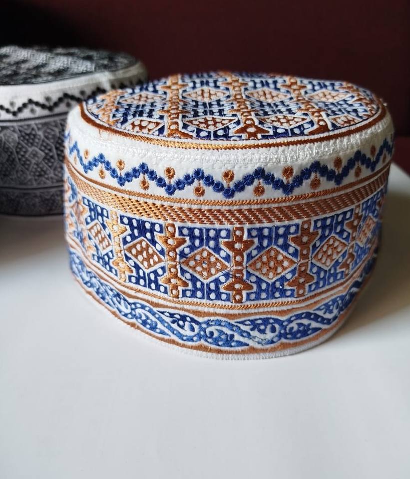 New Arrive Customized Embroidered Omani Muslim Prayer Hat Barkati Topi Islamic Takke for Adults Style Bangladesh Casual Use