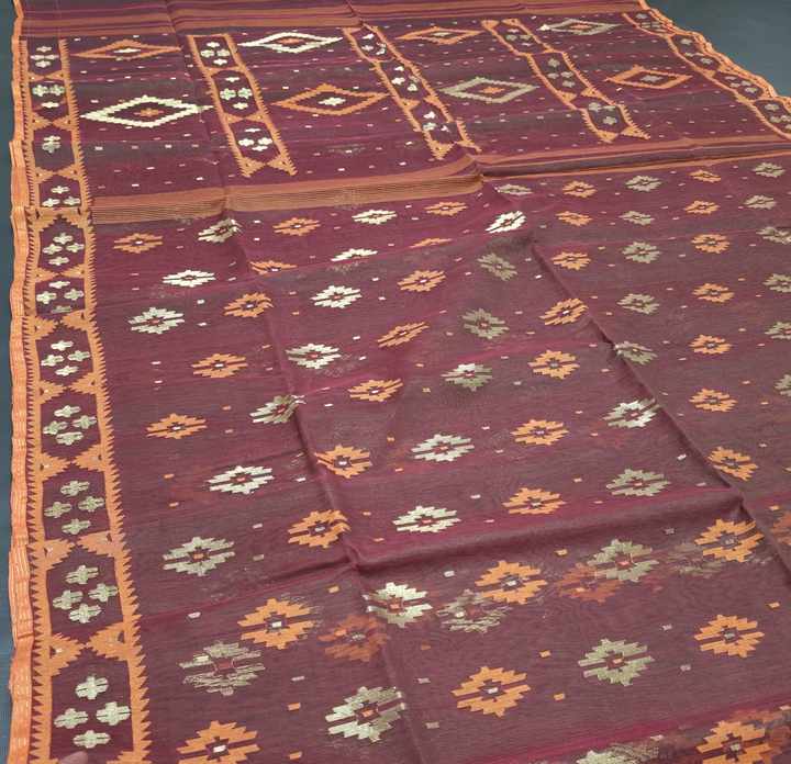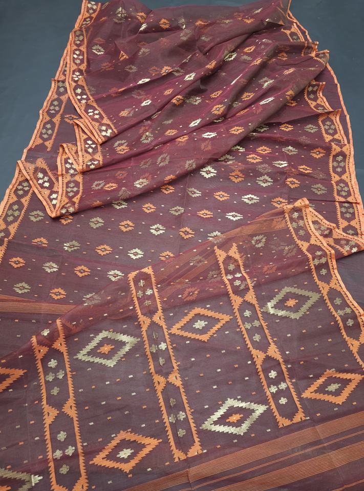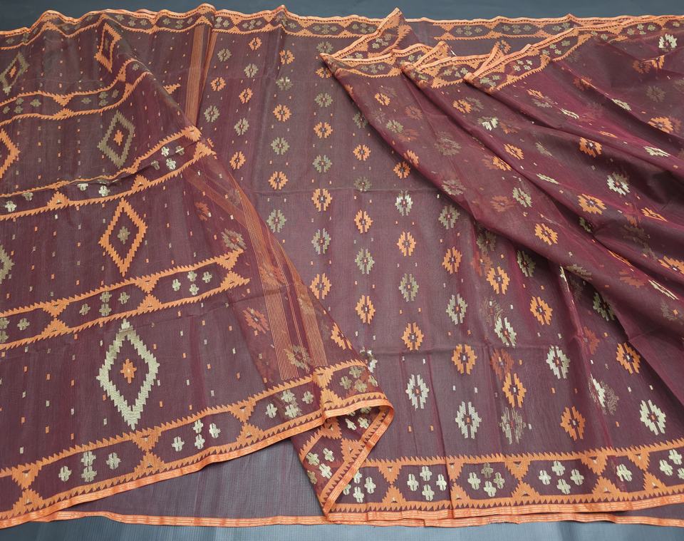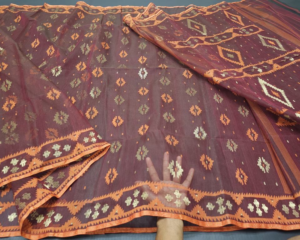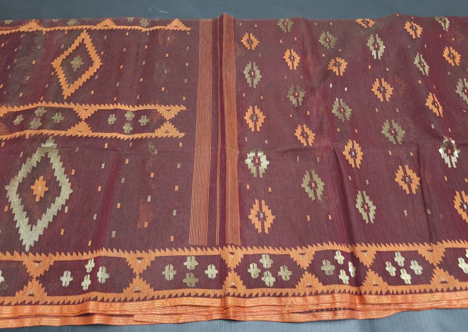 ผ้าชีฟอง MTI JSF-043 ลาย Deshi Dhakai Jamdani คุณภาพส่งออก สำหรับผู้หญิง สีฟ้า แดง เขียว ทอง ฟ้า ผลิตในบังคลาเทศ