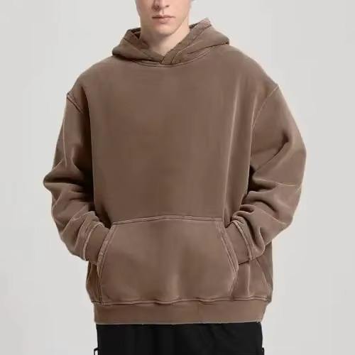 เสื้อฮู้ดสำหรับผู้ชายผ้าซักแร่แบบสวมหัวเสื้อมีฮู้ดสำหรับผู้ชายขนาดใหญ่พิเศษสไตล์วินเทจ500gsm ซักได้ตามต้องการ