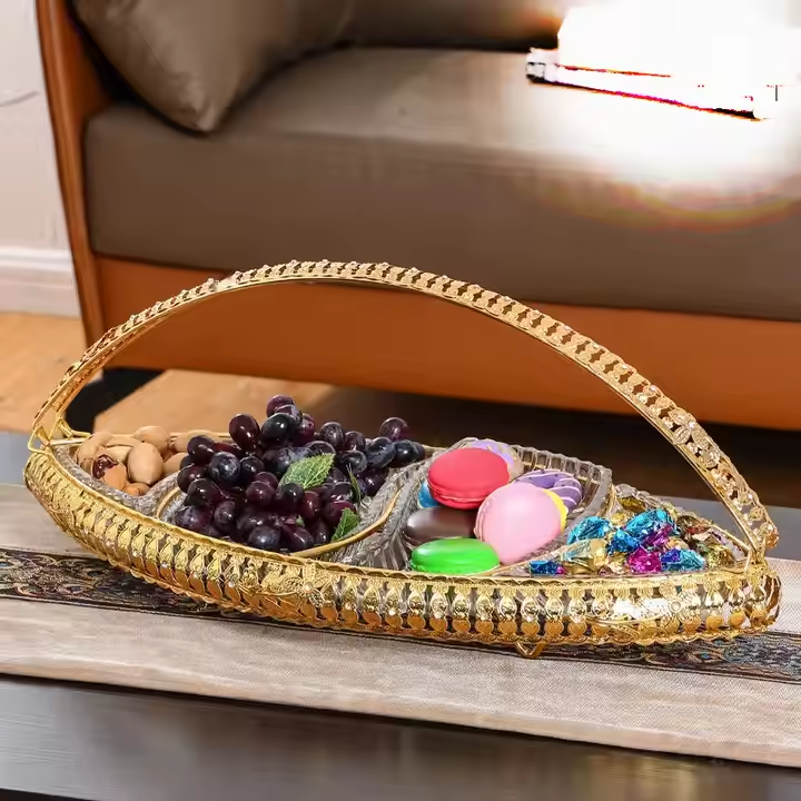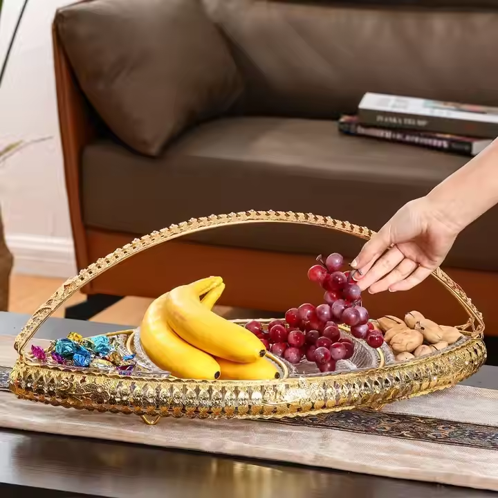 ตะกร้าอะคริลิคถาดใส่ผลไม้ขนาดใหญ่พร้อมที่จับสำหรับตกแต่งสไตล์ยุโรป