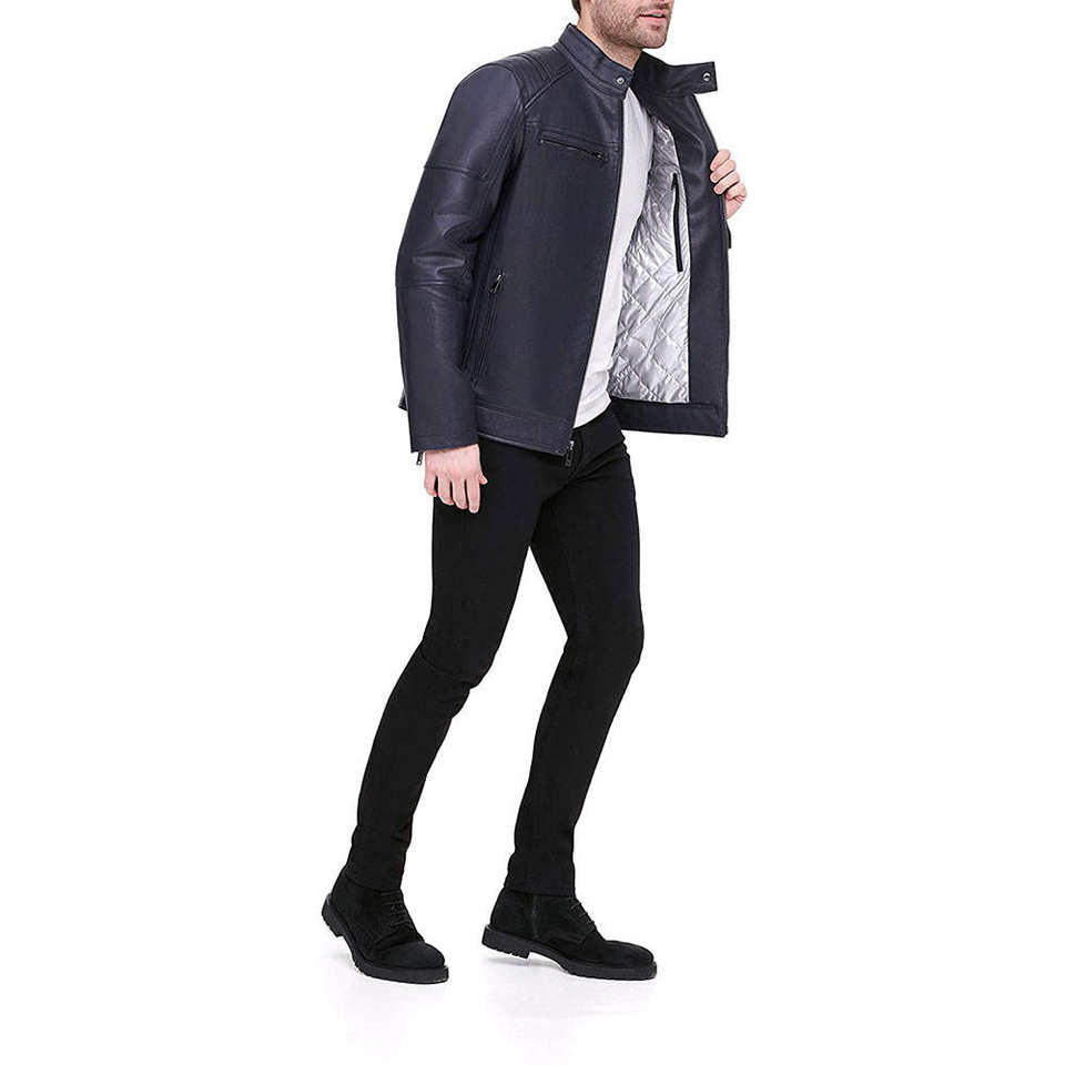 แจ็คเก็ตหนังผู้ชายแบบใหม่มาถึงแล้ว แจ็คเก็ตหนังแกะสำหรับฤดูหนาว คอตั้ง แฟชั่น ซิปแบบ Biker คลาสสิก กันน้ำ