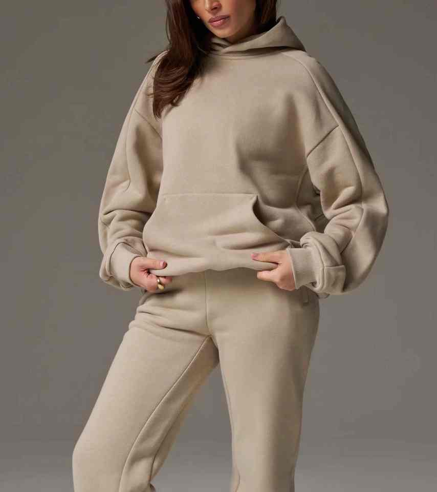 เสื้อกันหนาว2ชิ้นของผู้หญิงผ้าโพลีเอสเตอร์/ ผ้าฝ้ายโอเวอร์ไซซ์เปิดไหล่ทรงหลวมทรงหลวมทรงหลวมขาบานเซ็ตใหม่สำหรับฤดูหนาว2025