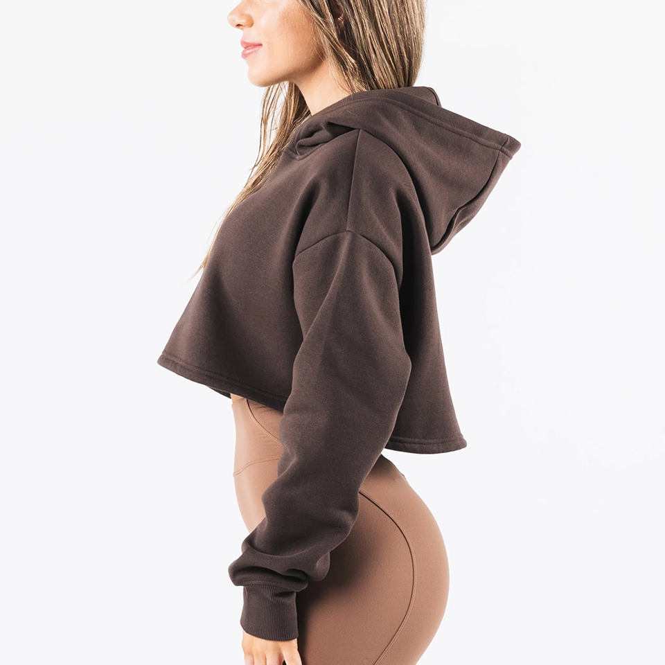New Arrived Women's Long Sleeve Cropped Pullover Hoodies with Front Logo Breathable Sports Bra Friendly Athletic Crop Tops