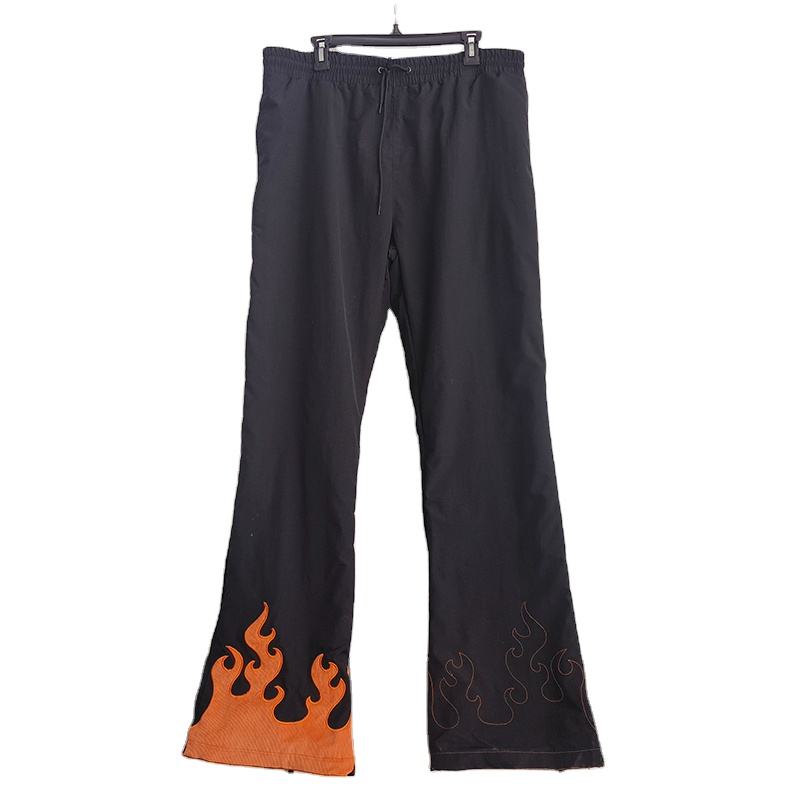กางเกงกีฬาผ้าไนลอนขาบานของผู้ชายมาใหม่กางเกงวอร์มเอวสูงเย็บปะติดปะต่อกัน100% 2026