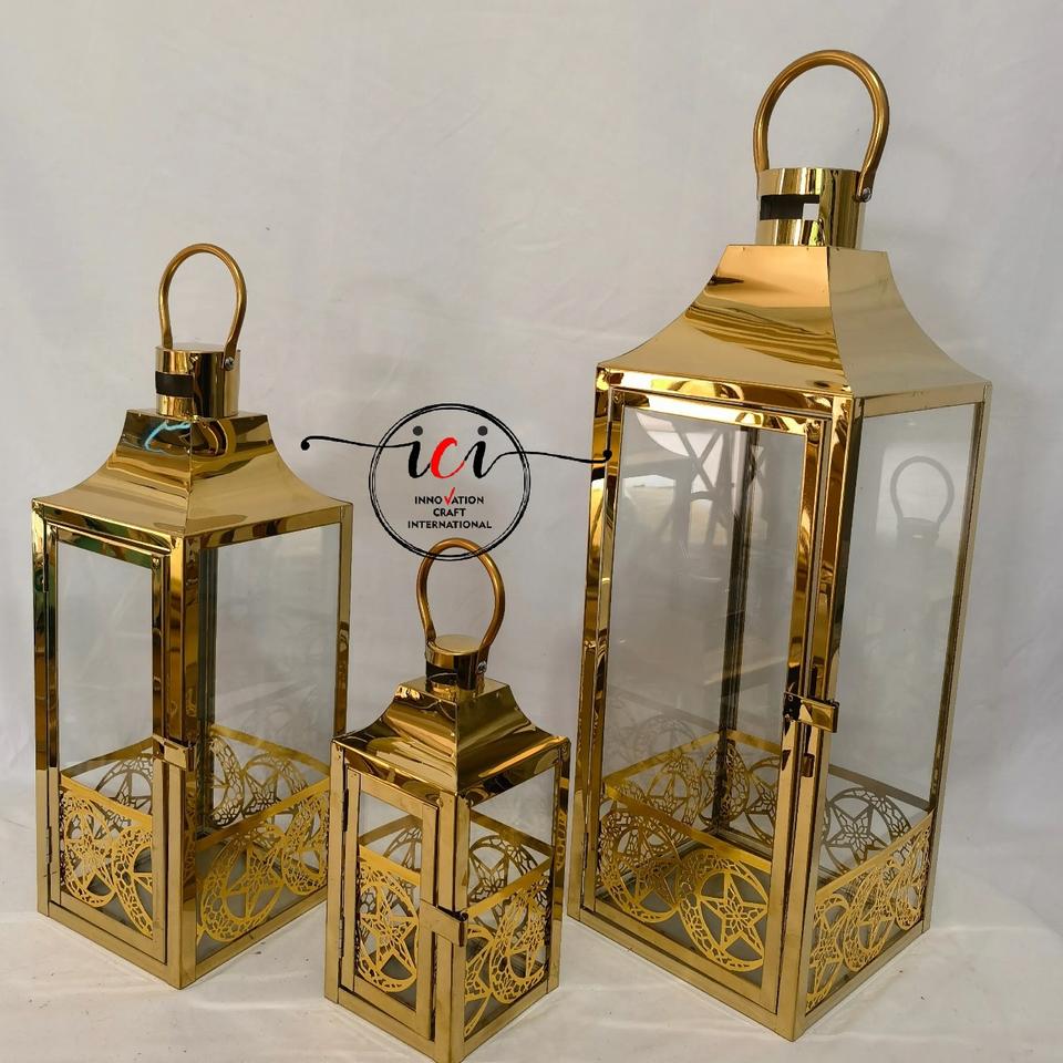 โคมไฟเทศกาลฮัจญ์รอมฎอนสีทองมาใหม่โคมไฟตกแต่งพื้นดีไซน์ตัดเป็นเอกลักษณ์ปรับขนาดได้ตามต้องการ