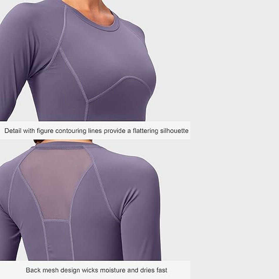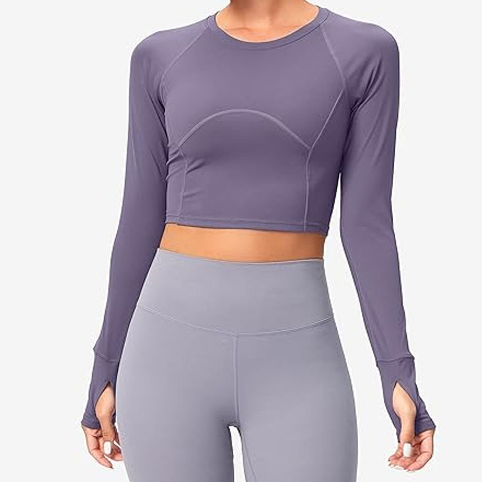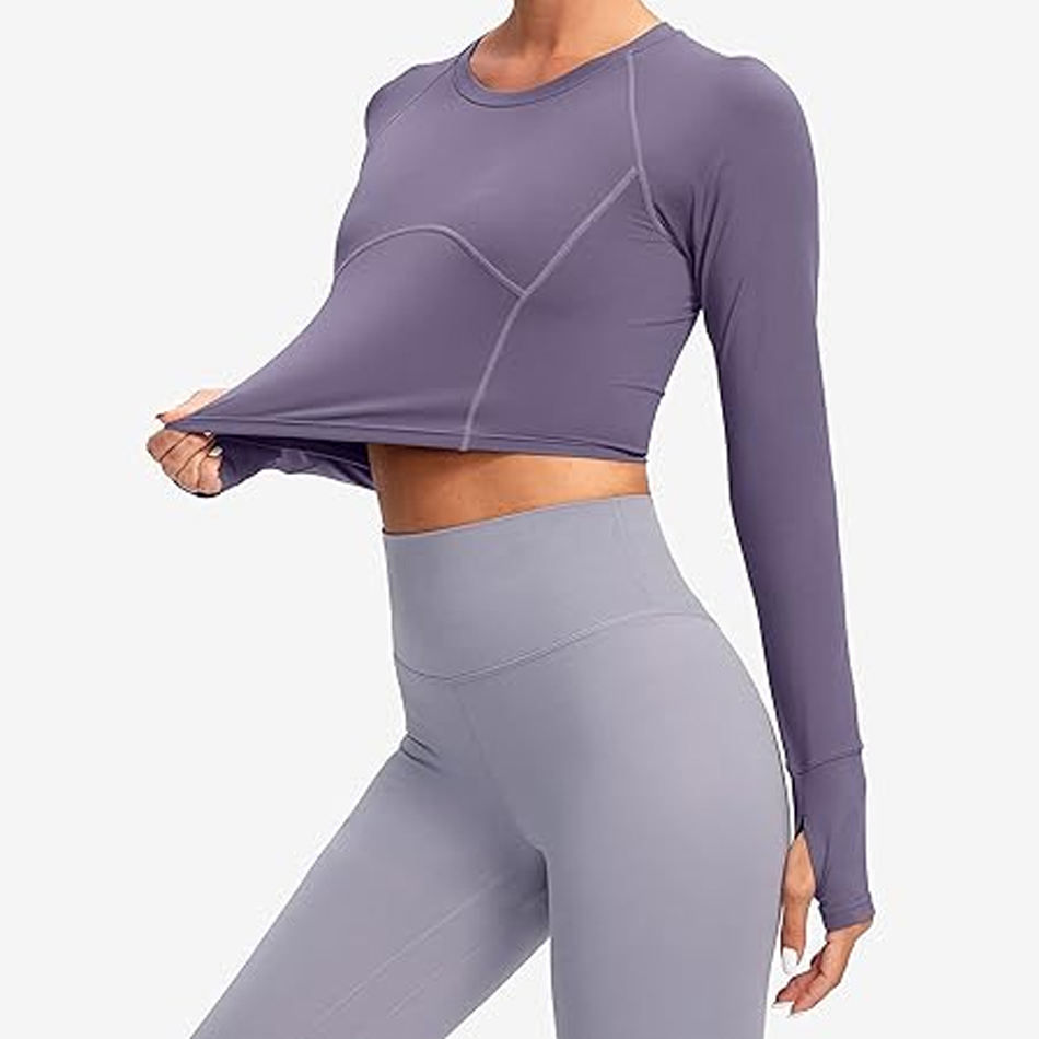 กางเกงออกกำลังกายผู้หญิงแบบใหม่ แขนยาว กระชับรูปร่าง เอวยืดหยุ่น ผลิตจากโพลีเอสเตอร์/ไนลอน เสื้อโยคะสำหรับออกกำลังกาย