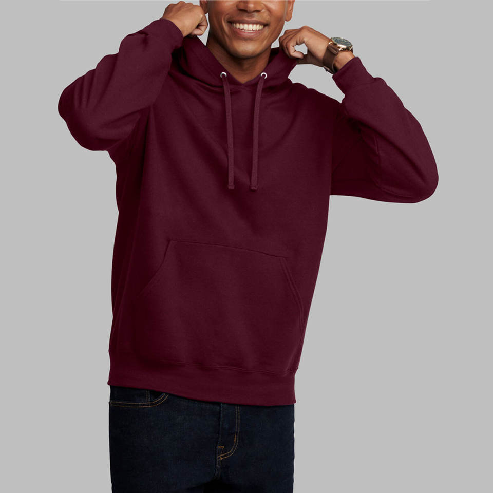 เสื้อฮู้ดกันลมสำหรับผู้ชายรุ่นใหม่ Dri-Power ผ้าฟลีซสีสันสดใส 100% ผ้าฝ้ายเนื้อหนา อุ่นสบายสำหรับฤดูหนาว สีแดงเลือดหมู