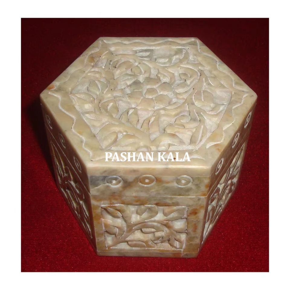 กล่องเก็บเครื่องประดับอัญมณีแกะสลักทรงหกเหลี่ยมทำด้วยมือดีไซน์ใหม่ที่น่าสนใจสำหรับตกแต่งบ้านและกล่องของขวัญ