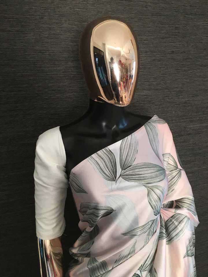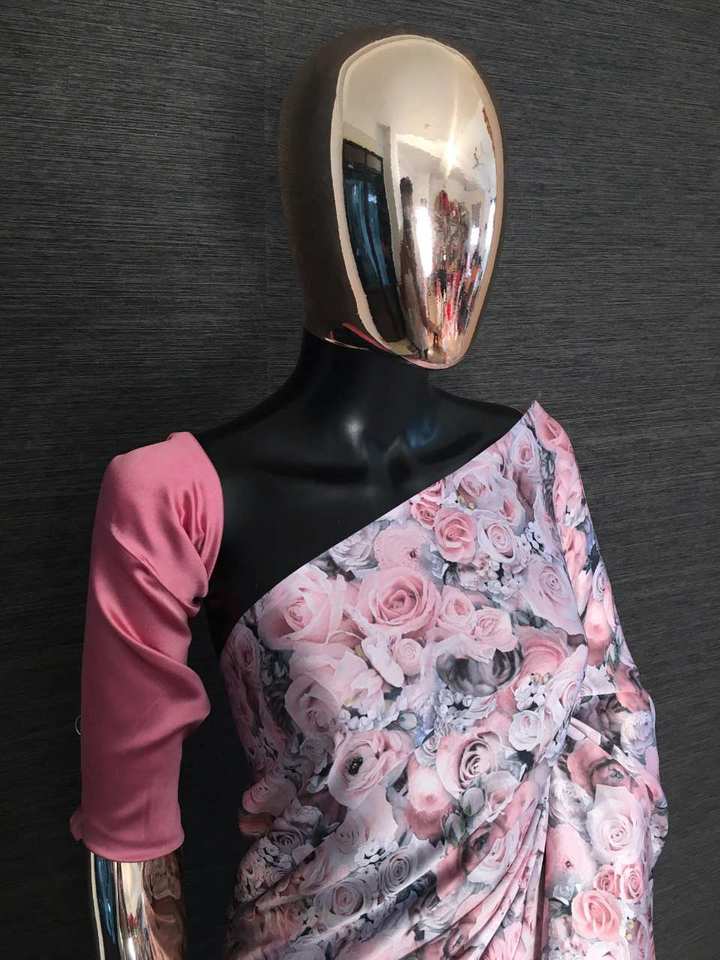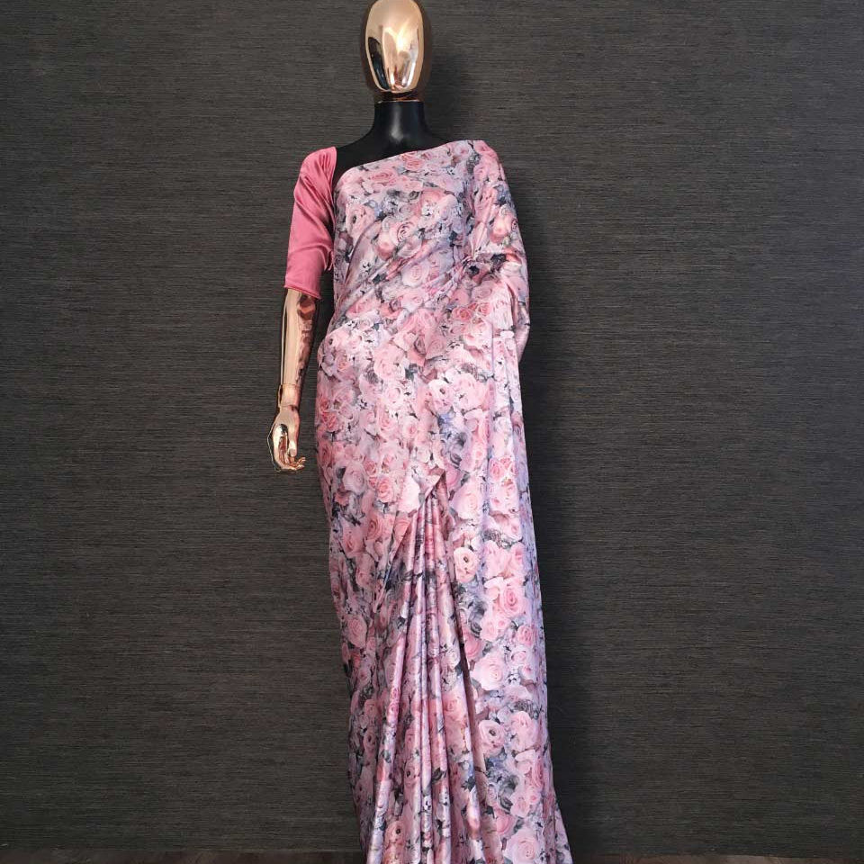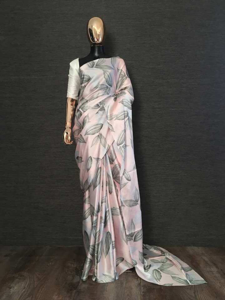 ชุดผ้าซาตินพิมพ์ลายดิจิทัลพร้อมเสื้อชิ้นผ้าซาตินสำหรับผู้หญิงอินเดียเครื่องแต่งกายแบบส่าหรี