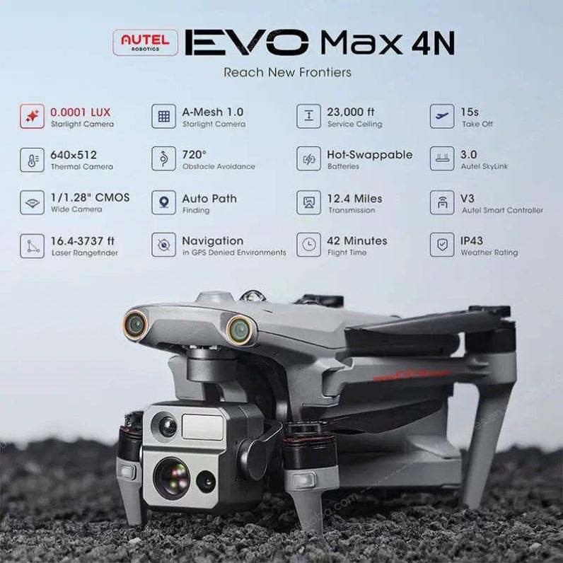 โดรน Autel Robotics EVO Max 4N รุ่นใหม่ กล้องถ่ายภาพความร้อน กล้องมองกลางคืน ระบบวัดระยะด้วยเลเซอร์ ระยะไกล 20 กม. พร้อม GPS ควบคุมระยะไกล สำหรับการใช้งานเชิงพาณิชย์
