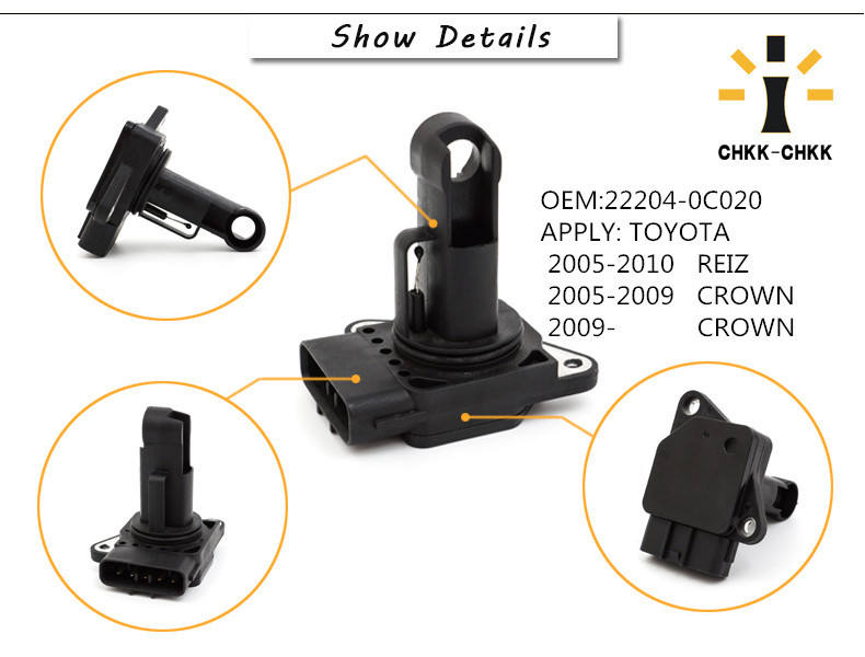 เซ็นเซอร์วัดอากาศมวลแบบใหม่สำหรับรถยนต์โตโยต้า โคโรลล่า อเวนซิส ยาริส คราวน์ เล็กซัส # 22204-0C020 22204-22010 19740-02030