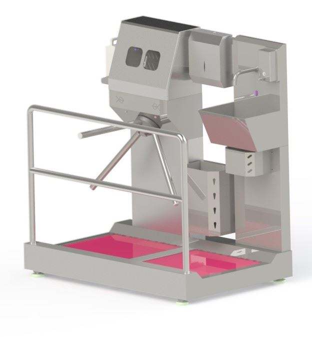 เครื่องกั้นสุขอนามัยอัตโนมัติรุ่นใหม่ พร้อมอ่างล้างมือแบบไม่สัมผัสและน้ำยาฆ่าเชื้อ สแตนเลส ยี่ห้ออินเตอร์เมท ไฮยีน