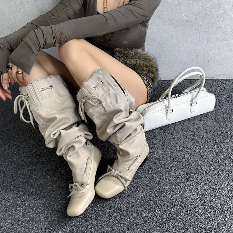 เสื้อคลุมมีฮู้ดทรงวีคอกลม แฟชั่นใหม่สำหรับฤดูใบไม้ร่วงและฤดูหนาว สวมใส่ได้หลากหลาย ผลิตจากหนังวัวแท้ พร้อมส้นรองเท้าสูงปานกลาง กันน้ำ กันลื่น ทนทาน